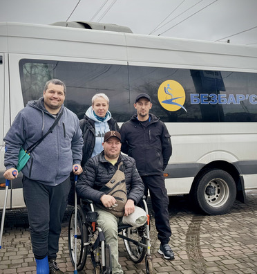ГО «Безбар’єрні» надала спеціально обладнаний автобус, щоб Захисники могли дістатися тренінгу Олександра Терещенка «Життя після ампутації», де обговорювалися питання адаптації, самостійності та взаємопідтримки.